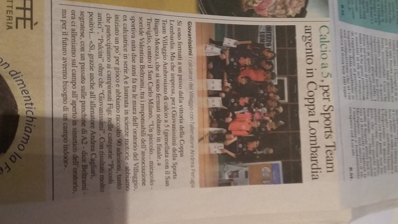 ECCOCI IN EDICOLA!!! IL GIORNALE "SEGRATE OGGI" PUBBLICA UN ARTICOLO TUTTO DEDICATO ALL'IMPRESA DEI NOSTRI GIOVANISSIMI IN COPPA LOMBARDIA,GRANDIII!!!